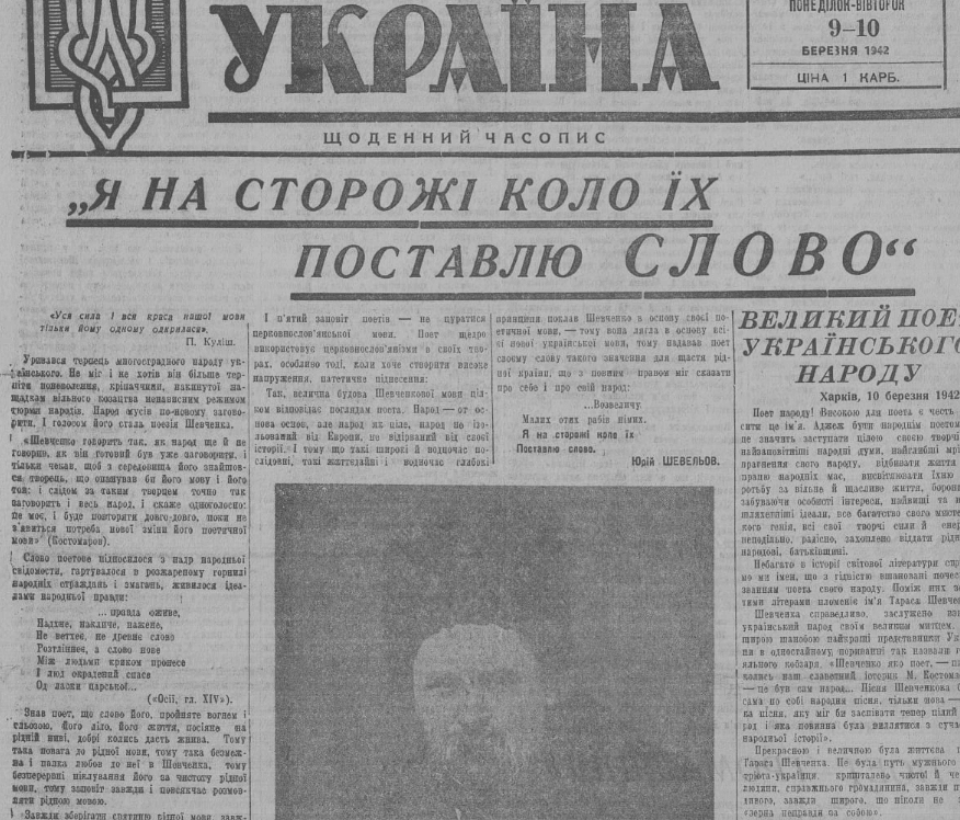 В годы немецкой оккупации Шевелев писал статьи для газеты «Новая Украина», в основном на тему украинской культуры и языка.