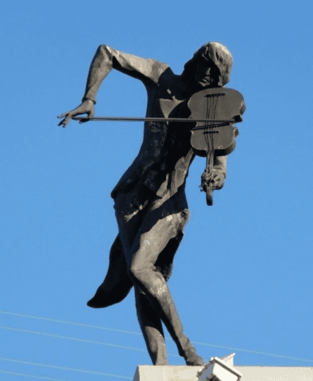Харьковский музыкант – не только творческий парень, но и любитель путешествовать. Не верите, что так может быть? А оно действительно может. Потому что сначала скульптура была установлена на крыше консерватории, старинное четырехэтажное здание которой расположено на площади Конституции и само по себе является памятником архитектуры начала 20 века, возведенного по проекту Иоганна-Фридриха Лидваля.