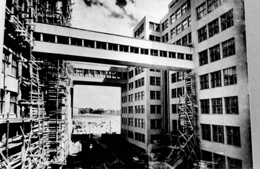 У 1925 році оголосили конкурс на найкращий проєкт, а у листопаді 1926 року вже відбулась урочиста закладка центрального корпусу. На чолі будівництва став інженер з великим досвідом — Павло Роттерт. Він був вмілим адміністратором, міг правильно організувати роботу та завжди прислуховувався до своїх працівників. В той момент Роттерт разом зі своїми молодими підопічними застосував прогресивний метод “плавучої опалубки”, тому можна вважати, що будівля Держпрому — це суцільний моноліт залізобетону. Також пояснення міцності будівлі можна вважати застосування японської технології зведення хмарочосів у сейсмонебезпечних зонах. Так величезну будівлю зводили три роки, з 1925 по 1928. До речі, цікавий факт: під час риття одного з котлованів були знайдені кістки мамонта, які зараз знаходяться в Державному музеї природи Харківського університету ім. В. Н. Каразіна.